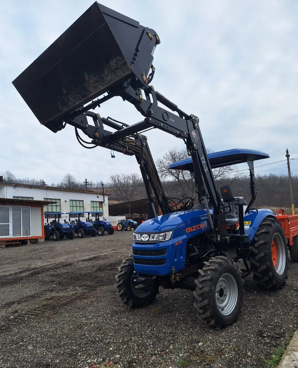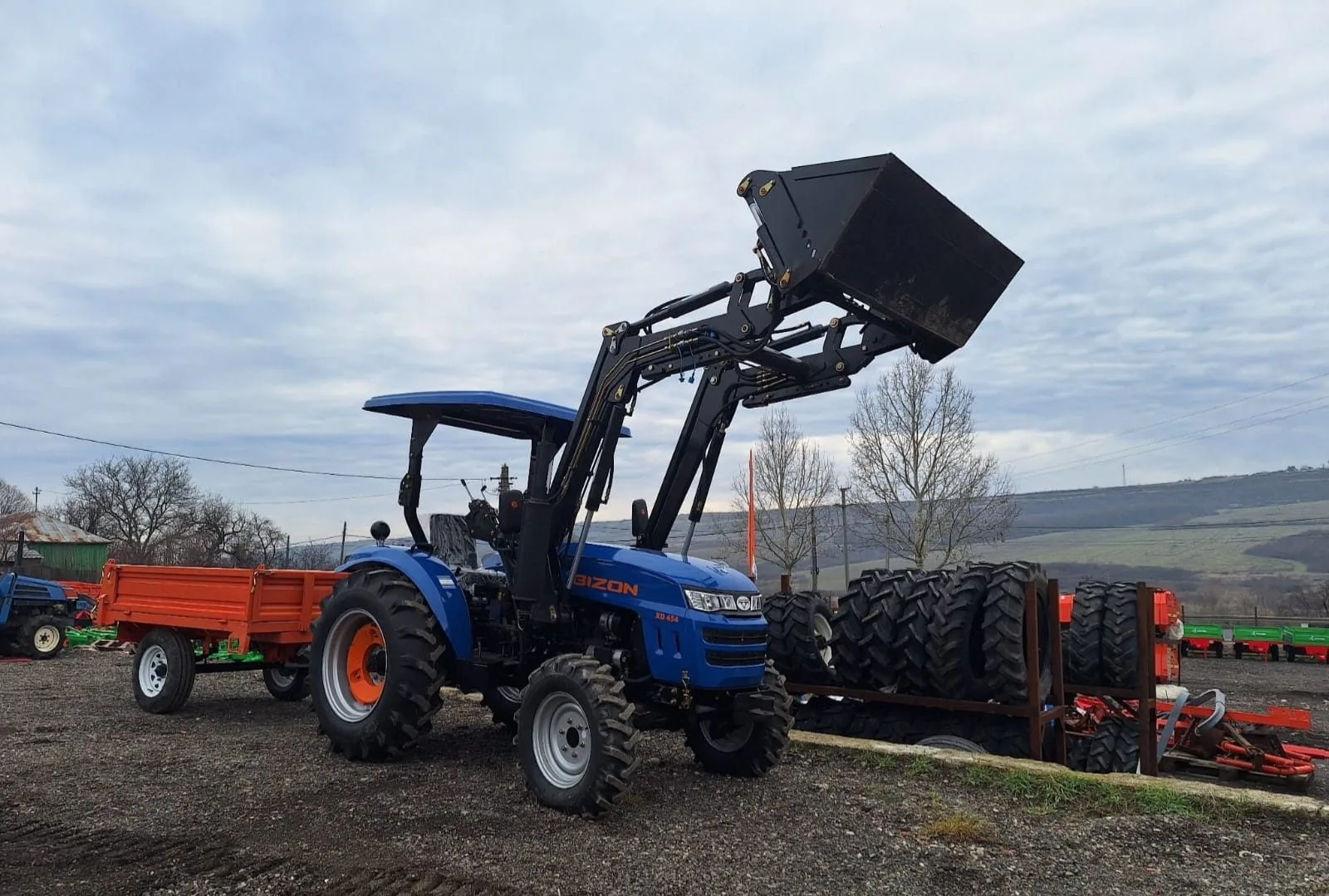 Tractor Bizon XD-454 cu încărcător frontal are motor diesel Toyokawa Japan de 45 CP, 4 cilindri cu răcire cu lichid. Dotările includ transmisie 4x4WD cu diferențial blocabil, 8 viteze înainte și 2 înapoi, direcție asistată și sistem hidraulic cu 2+1 ieșiri pentru atașarea echipamentelor. Încărcătorul frontal TZ-3 cu capacitate de ridicare de 550 kg completează tractorul, potrivit pentru ferme de toate dimensiunile.